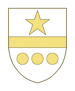 Une trangle (un coupé?) accompagnée en chef d’une étoile, en pointe de trois besants ou tourteaux en fasce.
