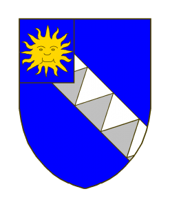 Chardelle – variante 2 Sizes: 150 × 150 / 247 × 300 / 700 × 850 de Chardelle - variante 2 Armes: D’azur à la bande emmanchée d’argent, au franc-quartier d’azur chargé d’un soleil d’or. (C./ article Chordel). Zitiert nach (Quelle): A.L. Seite 284