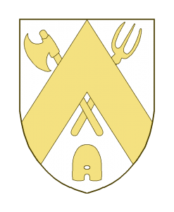 Un chevron brochant sur une hache et un trident posés en sautoir, accompagné en pointe d’une ruche.