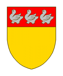 D’or au chef de gueules, à trois oiseaux d’argent.
