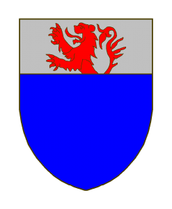 D’azur au chef d’argent chargé d’un lion issant de gueules.