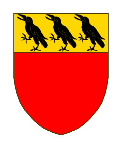 De gueules au chef d’or chargé de trois merlettes, ou pire, trois corbeaux, de sable,