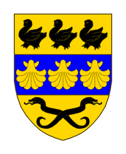 D’or à la fasce d’azur chargé de trois coquilles d’or, accompagnée en chef de trois merlettes de sable, en pointe de deux couleuvres du même.