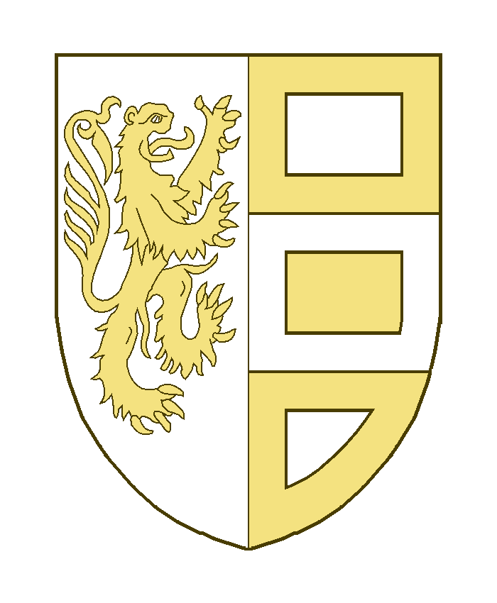 Parti au I un lion contourné, au II tiercé en fasce, chacune des trois partitions à la bordure.