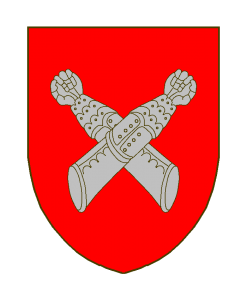 De gueules à deux bras armés, gantés, au naturel, passés en sautoir.
