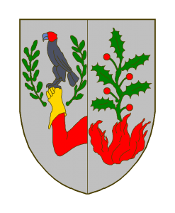 Parti au I de Colnet, qui est d’argent au sénestrochére de gueules, paré d’argent, mouvant du flanc vers la pointe, la main gantée d’or portant sur le poing un faucon au naturel chaperonné de gueules, et accosté de deux branches de fougère de sinople, ou au naturel, au II d’Huart, qui est d’argent à une branche de houx de sinople de 5 feuilles, fruitée de gueules, issant de trois flammes de gueules.