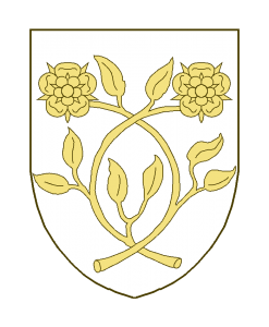 Deux rameaux de rosier feuillés, chacun à une rose,passés en double sautoir.