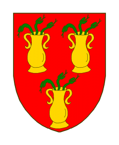 De gueules à trois vases d’or, d’où sortent trois têtes de serpent de sinople.