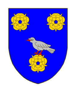 D’azur à trois roses d’or boutonnées du champ, posées deux et une, celle-ci surmontée d’une colombe d’argent, becquée et membrée de gueules.