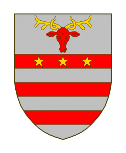 D’argent à trois fasces abaissées de gueules, la première chargé de trois étoiles d’or, accompagnée en chef d’un rencontre de cerf de gueules, ramé d’or.