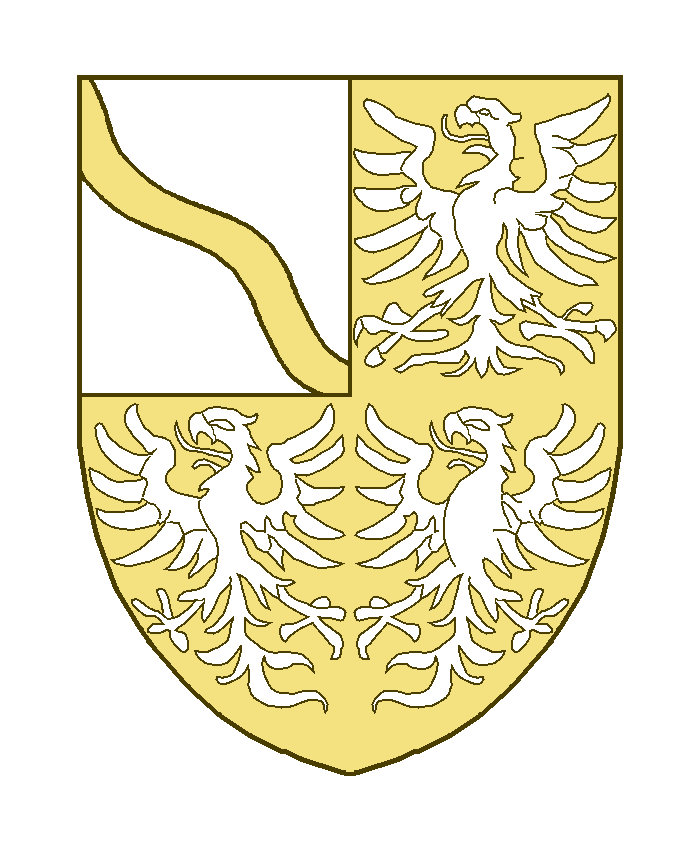 Trois aigles, une en chef à sénestre, deux en pointe, au franc-quartier chargé d’une bande ondée.