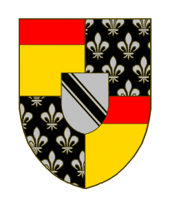 Écartelé: aux I et IV d’or au chef de gueules (Wiltz) aux II et III de sable semé de fleurs de lis d’argent (Lombut) et sur le tout d’argent à la bande coticée de sable (Custine).