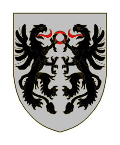 D’argent à deux griffons affrontés de sable, lampassés de gueules tenant entre les pattes de dextre un annelet de gueules.