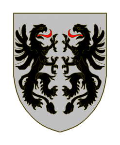 D’argent à deux griffons affrontés de sable, lampassés de gueules.