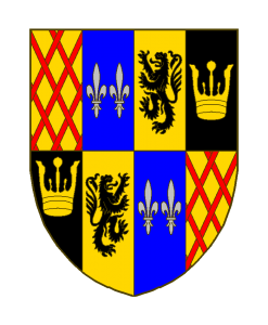 - Un demi-vol de sable chargé d’une couronne d’or.