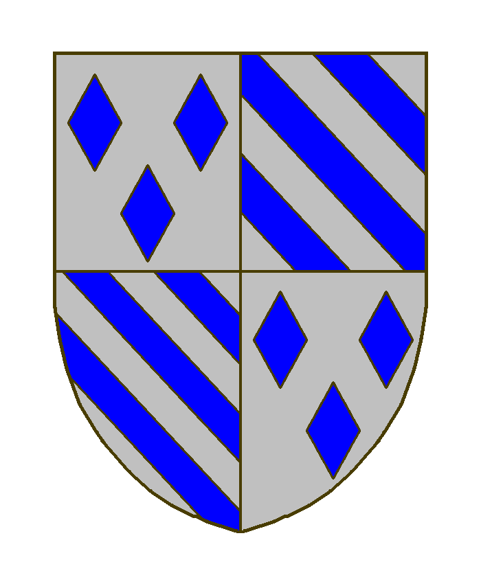 Écartelé: aux I et IV d’argent à trois losanges d’azur, aux II et III d’argent à trois bandes d’azur.
