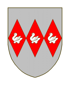 D’argent à trois fusées acollées en fasce de gueules, chacune chargé d’une merlette de . . .