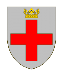 D’argent à la croix alésée de gueules , surmonté e d’une couronne d’or .