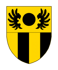 Coupé au I d’or au tourteau de sable entre deux demi-vols affrontés du même, au II palé d’or et de sable de quatre pièces.