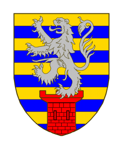 Diekirch Sizes: 150 × 150 / 247 × 300 / 700 × 850 Diekirch Burelé d’or et d’azur au lion (parfois couronné) d’argent soutenu d’une tour de gueules mouvant de la pointe