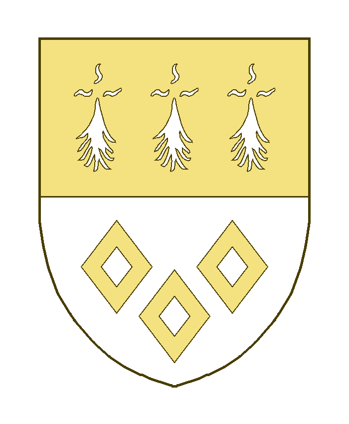 Coupé, en chef trois mouchetures d’hermine en fasce, en pointe trois macles, posées 2 – 1.