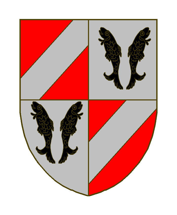 Durbuy – variante 1 Sizes: 150 × 150 / 247 × 300 / 700 × 850 de Durbuy - variante 1 Armes: Écartelé: aux I et IV de gueules à la barre d’argent, aux II et III d’argent à deux barbeaux de sable. Cimier: les barbeaux. Sources du Dr. Loutsch: (B.) Zitiert nach (Quelle): A.L. Seite 331
