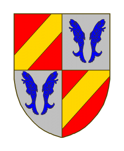 Écartelé: aux I et IV de gueules à la barre d’or, aux II et III d’argent à deux barbeaux d’azur.