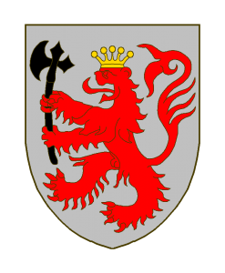 D’argent au lion de gueules, couronné d’une couronne à perles d’or, tenant des deux pattes une hallebarde de sable.