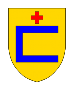 D’or à la pièce en forme de C carré d’azur surmonté d’une croisette de gueules.