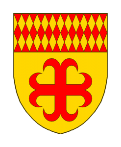D’or à la croix ancrée de gueules, au au chef losangé d’or et de gueules.