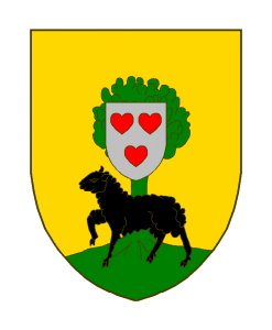 D’or à l’arbre de sinople chargé d’un écusson d’argent à trois coeurs de gueules, 2 – 1, et un mouton de sable passant au pied de l’arbre, le tout sur une terrasse de sinople.