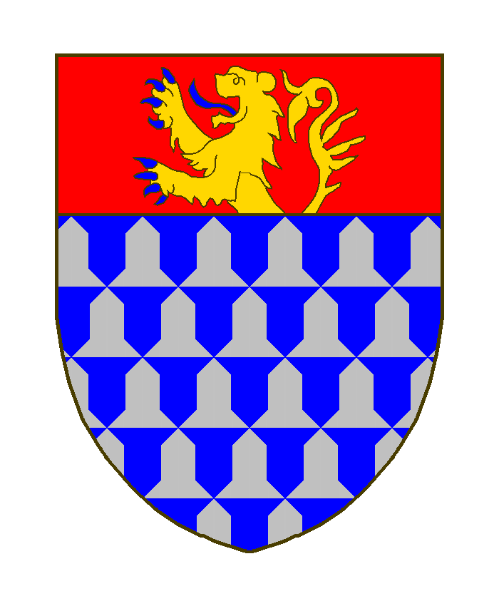 De vair au chef de gueules chargé d’un lion issant d’or, armé et lampassé d’azur.