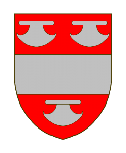 De gueules à la fasce d’argent, accompagnée de trois doloires ou haches couchées du même.