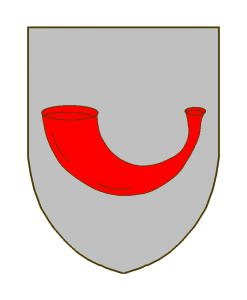 D’argent au huchet de gueules, l’embouchure à sénestre.