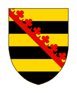 fascé d’or et de sable, au crancelin de gueules, brochant sur le tout.
