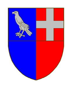 Écartelé, au I d’azur au faucon d’argent, au II de gueules à la croix d’argent, au III d’azur, au IV de gueules.