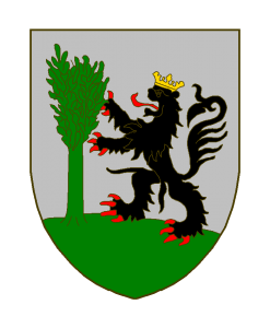 D’argent au lion de sable, armé et lampassé de gueules, couronné d’or, rampant contre un saule de sinople, le tout soutenu d’une terrasse du même.