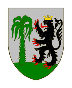 D’argent au lion de sable, armé et lampassé de gueules, couronné d’or, adextré d’un palmier de sinople, terrassé du même.