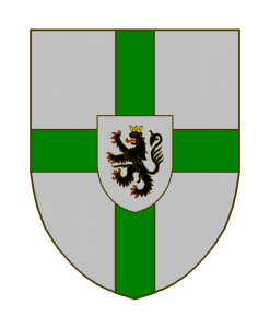 D’argent à la croix de sinople, chargé en coeur d’un écusson d’argent au lion de sable, armé et lampassé de gueules, couronné d’or.