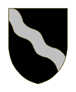 Un écusson aux armes entre deux proboscides, l’une de sable, l’autre d’argent.