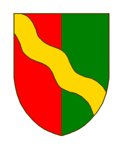 Parti de gueules et de sinople, à la bande ondée d’or brochant.
