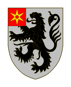D’argent au lion de sable, au quartier de gueules à la molette d’or.