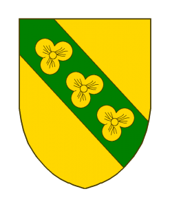 D’or à la bande de sinople, chargé de trois tiercefeuilles d’or.
