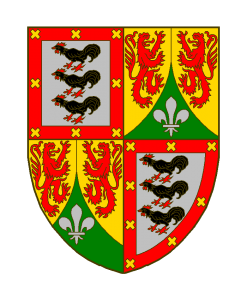 Écartelé: aux I et IV d’argent à trois coq s de sable, barbés, crêtés et membrés de gueules, à la bordure de gueules chargé de huit flanchis d’or, aux II et III d’or parti du même à deux lions affrontés de gueules, mantelé de sinople à la fleur de lis d’argent.