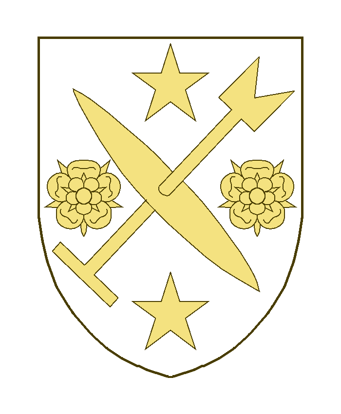 Un meuble indéfinissable en sautoir (dessin fidèle), accosté de deux roses, accompagné de deux étoiles, une en chef, une en pointe.