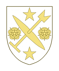 Un meuble indéfinissable en sautoir (dessin fidèle), accosté de deux roses, accompagné de deux étoiles, une en chef, une en pointe.