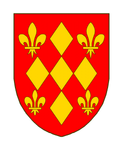 De gueules à cinq losanges d’or, aboutées et acollées en croix, cantonnées de quatre fleurs de lis du même.