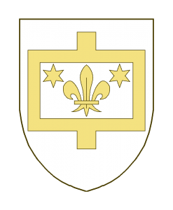 Une pièce quadrangulaire entourant une fleur de lis accostée en chef de deux étoiles à six rais