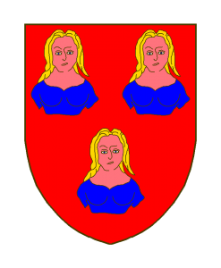 De gueules à trois bustes de filles au naturel, mises de front, drapées d’azur, chevelées d’or.
