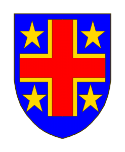Gommery – variante 2 Sizes: 150 × 150 / 247 × 300 / 700 × 850 de Gommery - variante 2 Armes: D’azur à la croix de gueules bordé d’or (ce qui est la même chose que: d’or vidée de gueules) etalésée, cantonnée de quatre étoiles d’or. Cimier: une étoile d’or. Sources du Dr. Loutsch: (N.M.) Zitiert nach (Quelle): A.L. Seite 391